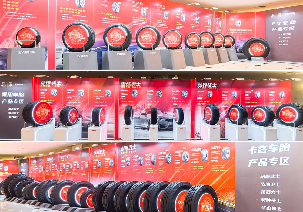 在会场产品展示区,糖心 EV糖心家族集体亮相,另外,乘用车胎展示了"部市骑士、"雪域勇士、"越界猛士“第列产品,满足不同场景下驾乘者的性能需求,卡客车胎展示了而磨武士、"节油卫士、坑载力士、“矿山勇士”、"特种斗”系列产品,全方位满足卡客车胎车主的商用需求力车胎产品展示"大力士、"丛林猛土、“雷霆骑士"系列产品,实现泥地,山地城市路面各场景应用。